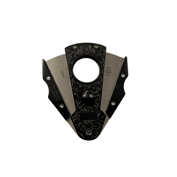 Cortador de puros de doble hoja en acero inoxidable, diseñado para ofrecer un corte limpio y preciso. Su mecanismo asegura practicidad y firmeza en cada uso, mientras que el acabado grabado aporta un estilo elegante y sofisticado.